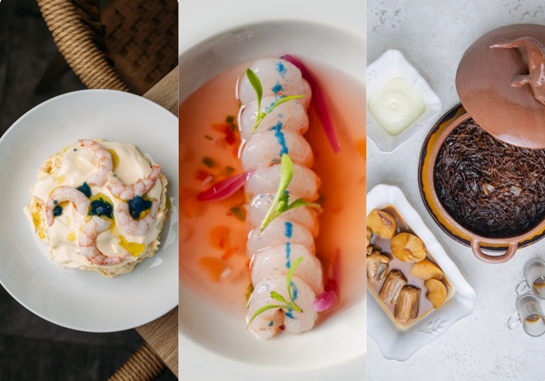 Montaje de imágenes de platos de La Recaleta, Clómada y Alaparte, tres de los restaurantes seleccionados en esta guía de 'mejores aperturas del año en Málaga' //