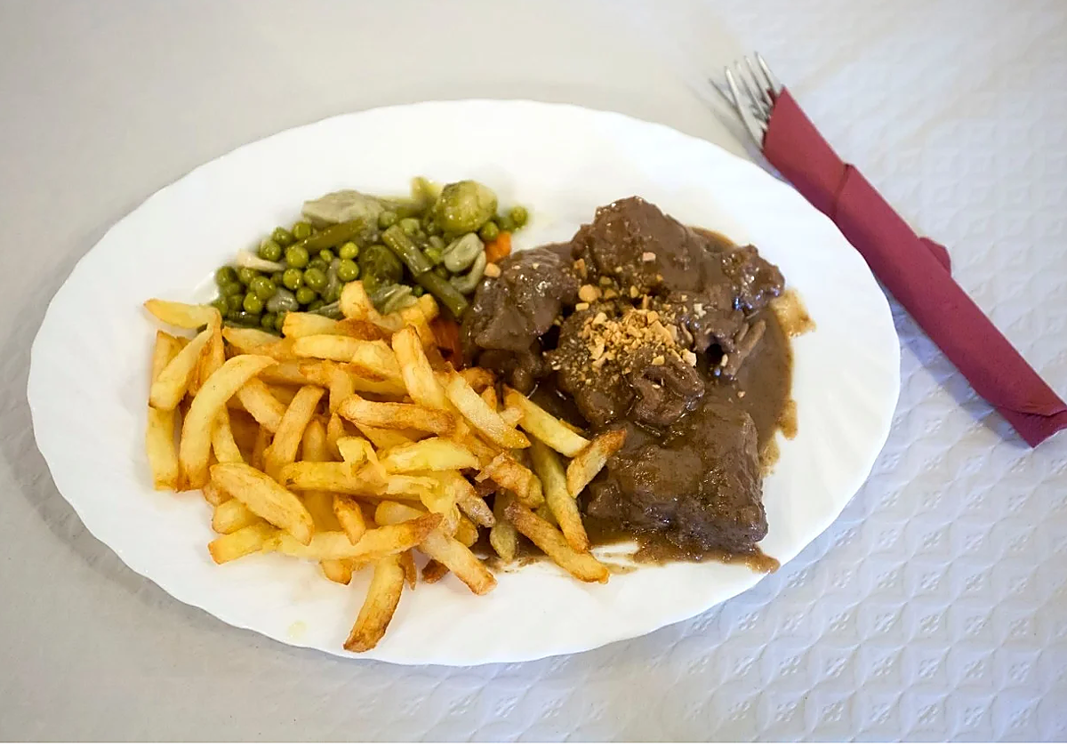 Guiso de carne con patatas fritas de Venta Galwey, uno de los restaurantes de carretera de Málaga que cuenta con Solete Repsol //