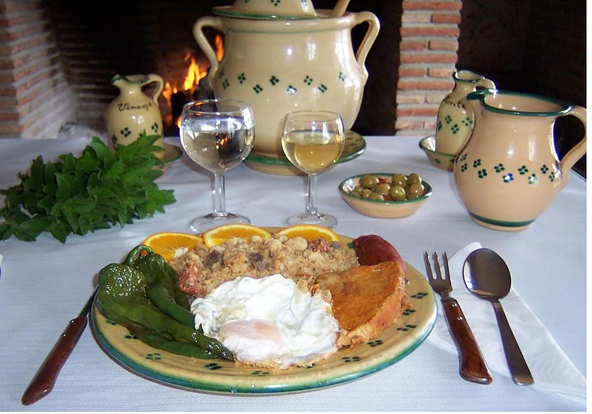 Migas del restaurante Atalaya, uno de los espacios recomendados para comer junto a la chimenea en Málaga //