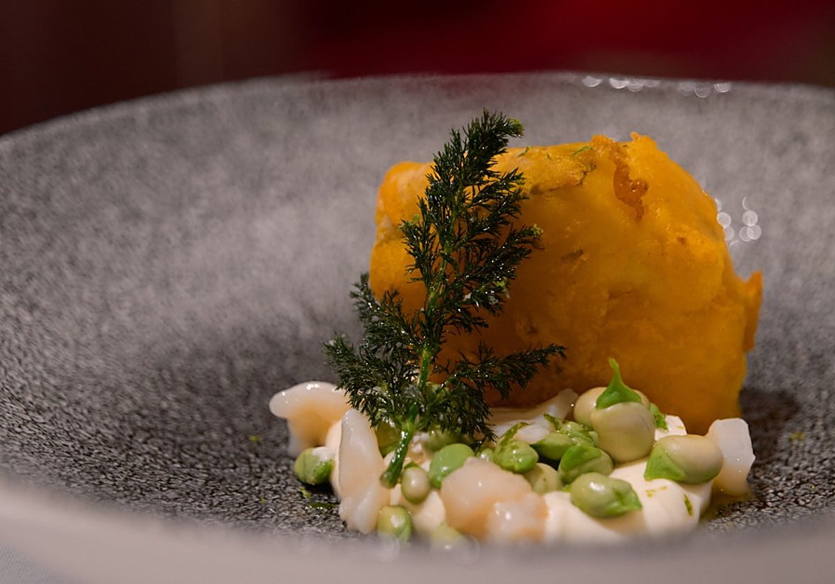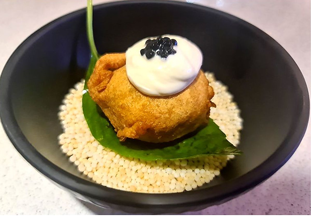 Bomba de pavía con mayonesa de soplagaitas, uno de los entrantes de Rastrojo, en la calle Zaragoza //