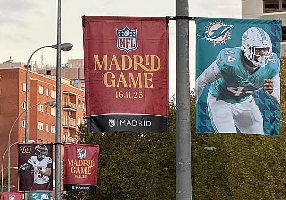 | bLa National Football League (NFL) aterriza en Madrid con una amplia programación de eventos y experiencias gratuitas para los aficionados en distintos puntos de la ciudad, con motivo del primer partido de temporada regular de la liga en la capital española: el domingo 16 de noviembre a las 15.30 horas, los Washington Commanders se enfrentarán a los Miami Dolphins en el estadio Santiago Bernabéu, dentro del marco del NFL Madrid Game 2025. Como parte de las celebraciones, los Miami Dolphins instalarán su 'fan zone' en la emblemática Plaza de España del jueves 13 al sábado 15 de noviembre, ofreciendo a los seguidores una combinación de cultura estadounidense, fútbol americano y tradiciones españolas. Además, del lunes 10 al domingo 16 de noviembre, el Collins Irish Tavern será la sede oficial de los Dolphins, acogiendo una animada fiesta el día del partido. | | | Carteles en Madrid promocionando el partido entre los Washington Commanders y los Miami Dolphins // REUTERS | | | |