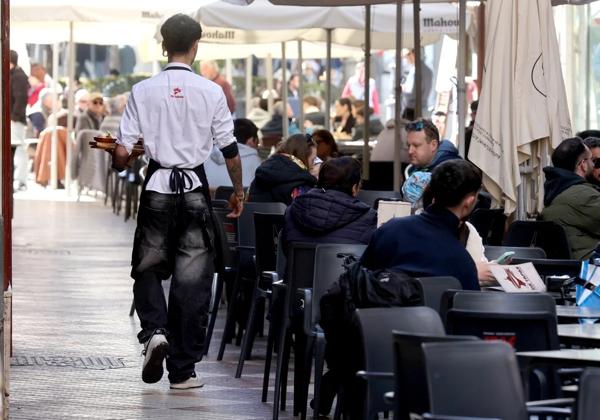 Un camarero atiende una terraza //