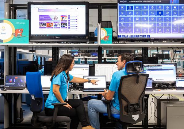 Dos profesionales de la francesa Atos en una de las sedes de la compañía //